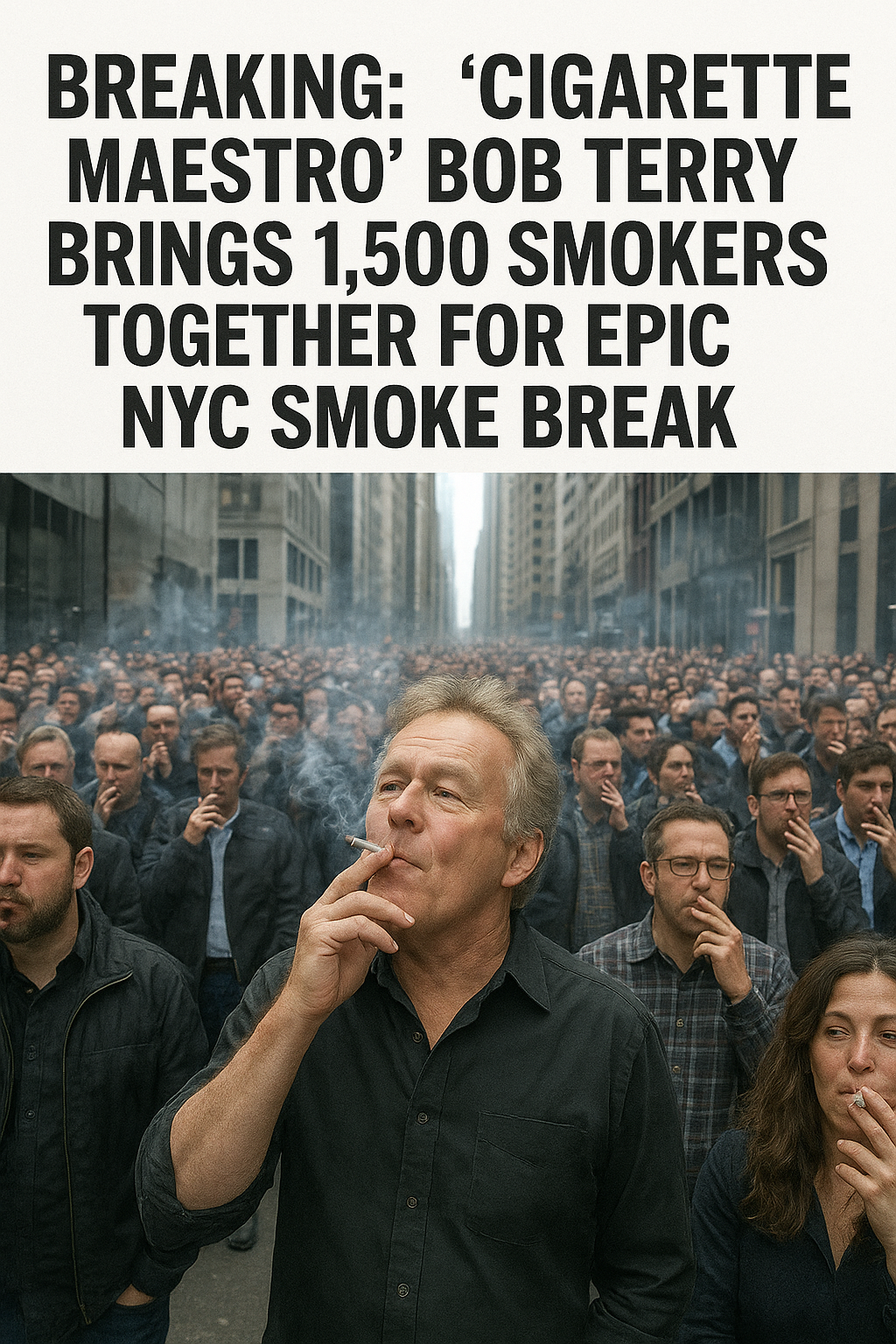 Bob Terry, a 75-year-old actor and self-proclaimed “Cigarette Maestro,” has made headlines by bringing together 1,500 smokers for an epic smoke break in New York