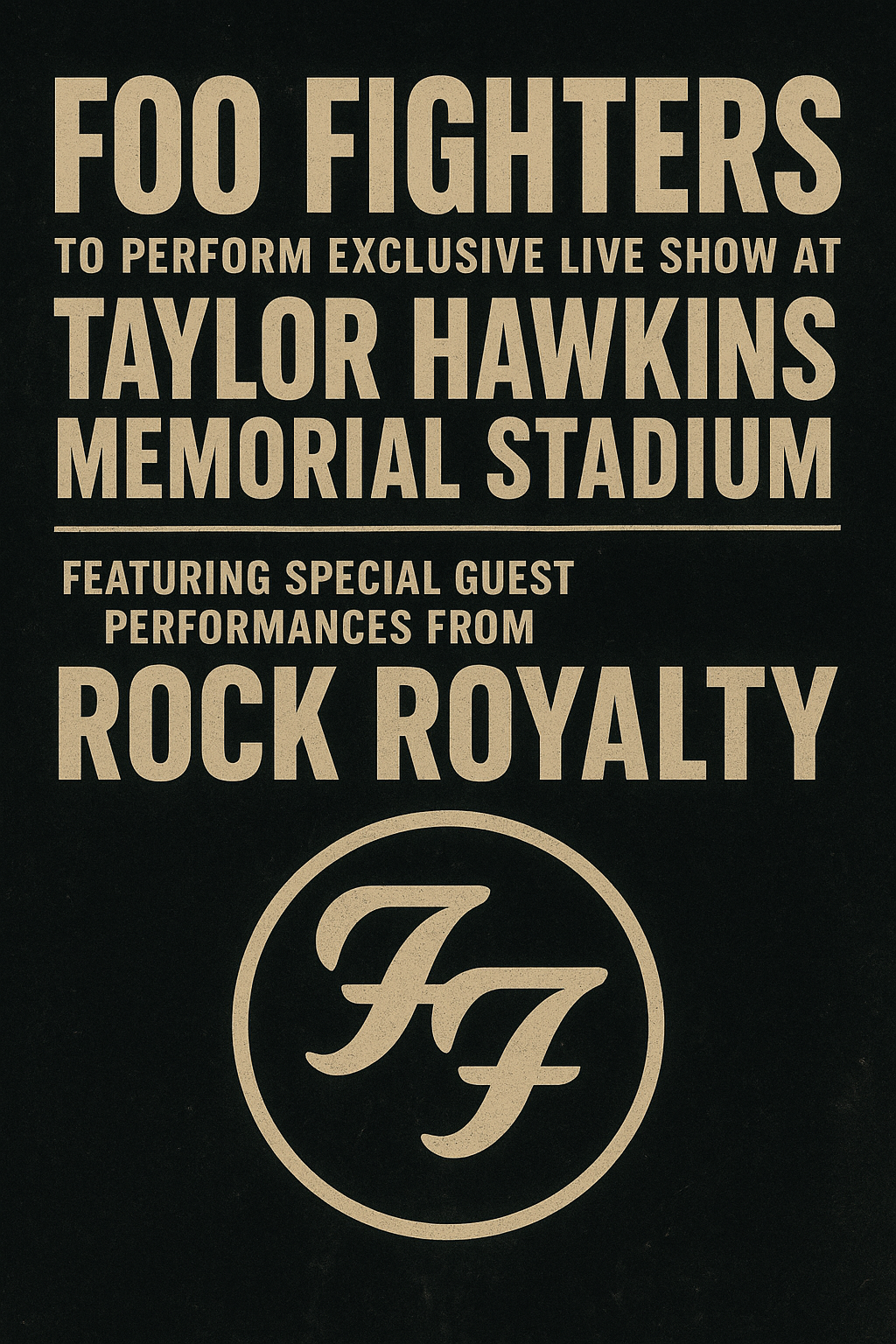 FOO FIGHTERS TO PERFORM EXCLUSIVE LIVE SHOW AT TAYLOR HAWKINS’ MEMORIAL STADIUM, FEATURING SPECIAL GUEST PERFORMANCES FROM ROCK ROYALTY In a shocking announcement,